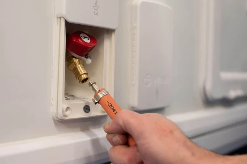 Quick and easy (un)coupling to an external hook up on a caravan or motorhome. This BBQ Point and Hose Kit is suitable for suitable for a Gemini connection on a BBQ point.