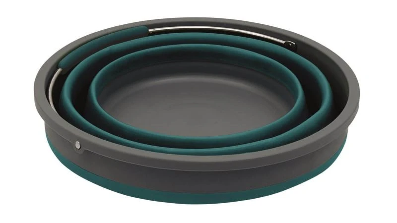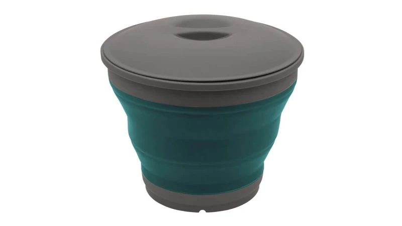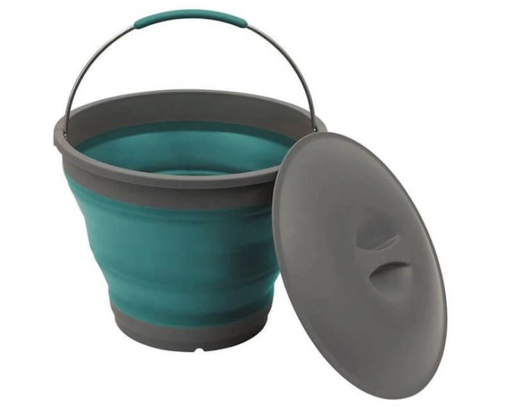 The Outwell Collaps Bucket with lid collapses completely flat when not in use and is ideal for cleaning.