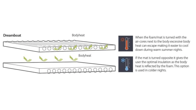 The Dreamboat Double 7.5 cm mat is a rectangular shaped mat designed for ultimate comfort. Its 3D shape is constructed with unique heat-regulating foam construction not only ensures a comfortable nights sleep, but it also reduces pack size remarkably.