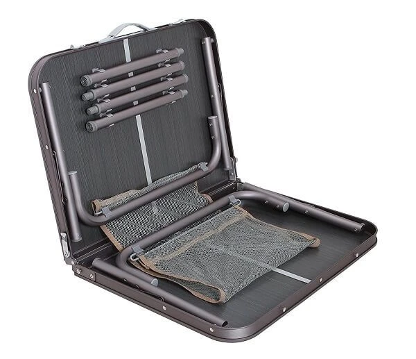 The โCleeveโ folding table from Quest Leisure features their exclusive duratech table top, adjustable levelling feet for use on uneven ground and can be used at two different heights thanks to the adjustable legs. The table top folds in half and the legs fold away and are packed under the table top into its own carry case. The carry case has an integrated handle making it easier to transport and to store when not in use. The small size makes it great for camping, outdoor picnics and even just using in the garden at home. The table has a useful and handy under table storage net which is ideal for magazines, newspapers or light utensils.ย